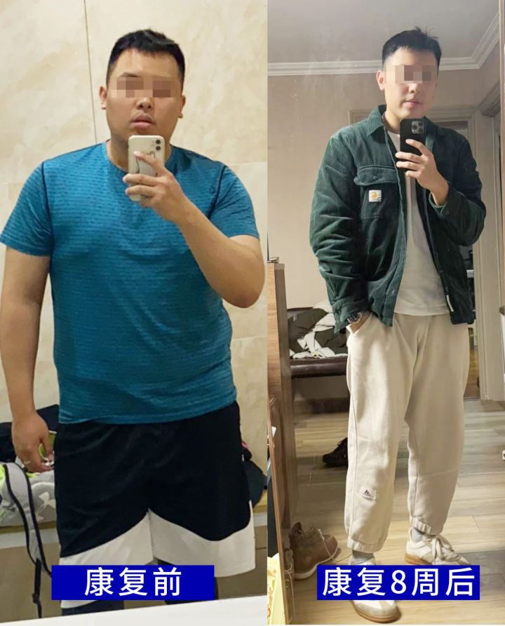 此外,一字步训练平衡,站姿抬腿训练臀肌,激活腘绳肌……在运动康复的同时还给予营养指导,不但肌肉力量上去了,体重也跟着降下来了,300斤大汉变身“精神小伙”。
